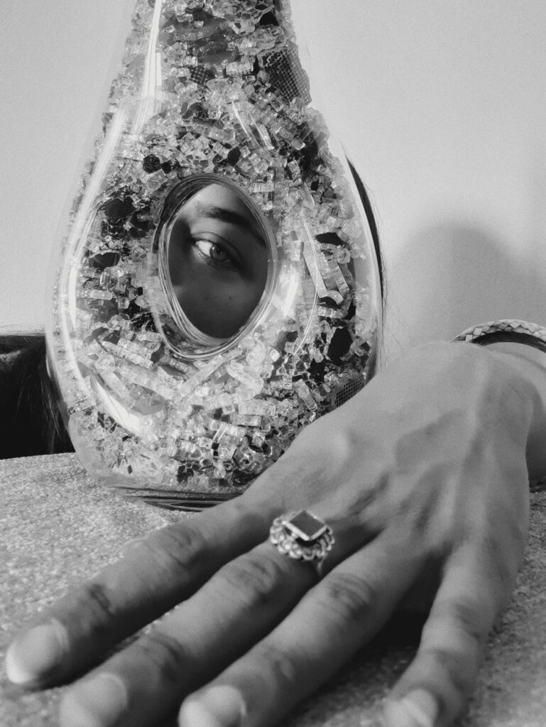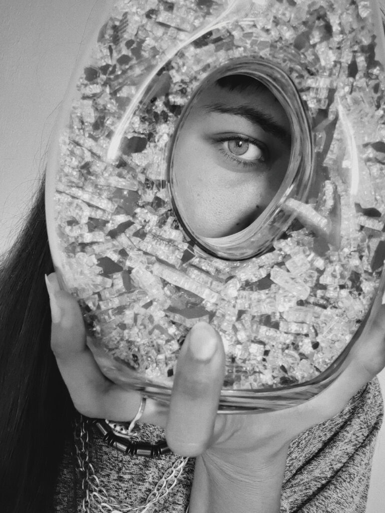 Camilla Bortolini é un’artista eclettica, amante dell’arte in tutte le sue forme, che vede i differenti linguaggi espressivi come un canale fluido per comunicare la sua visione. É per questo che nella sua produzione possiamo trovare opere che si differenziano molto in quanto a forma e tecnica. Si spazia dall’arte tessile al collage cartaceo, cosí come a quello digitale, dalla fotografia alle installazioni, dal ready-made alla poesia visiva.